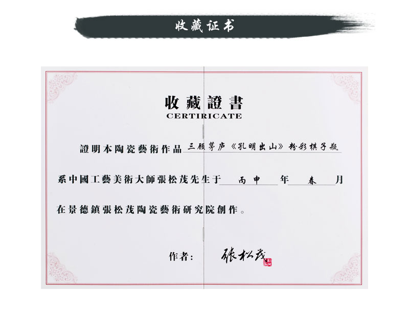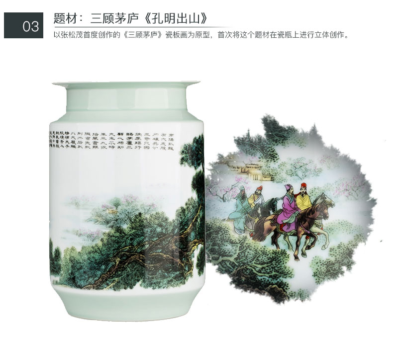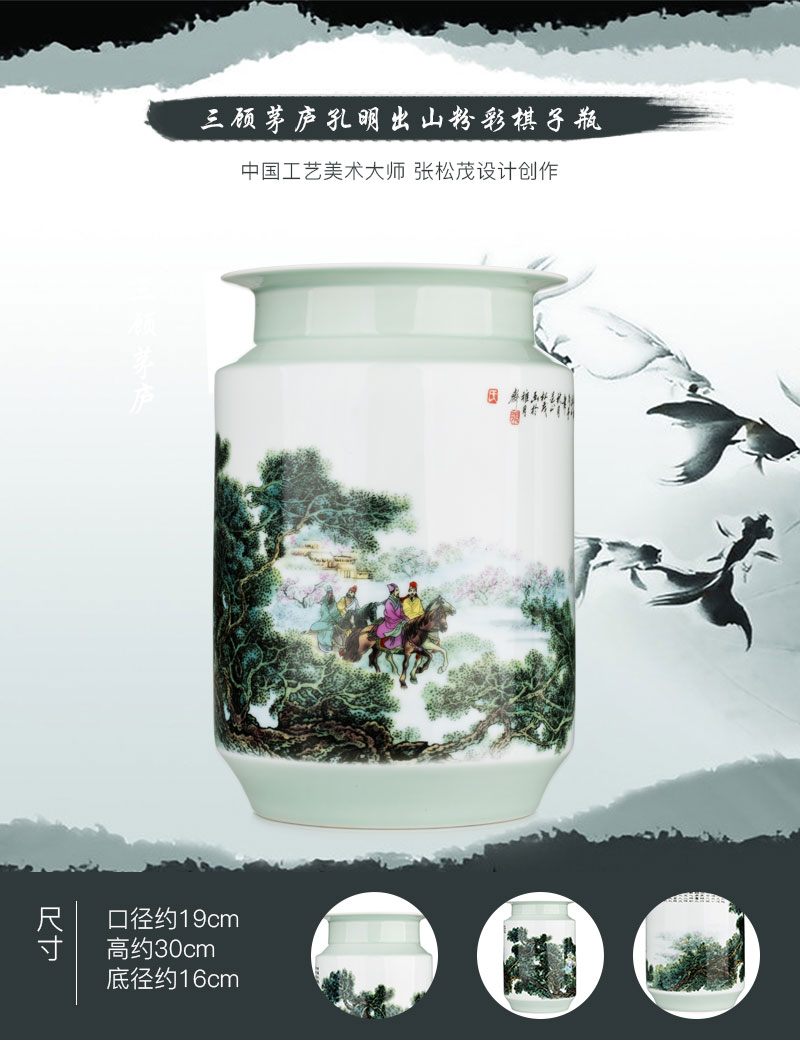 三顾茅庐孔明出山粉彩棋子瓶张松茂设计创作