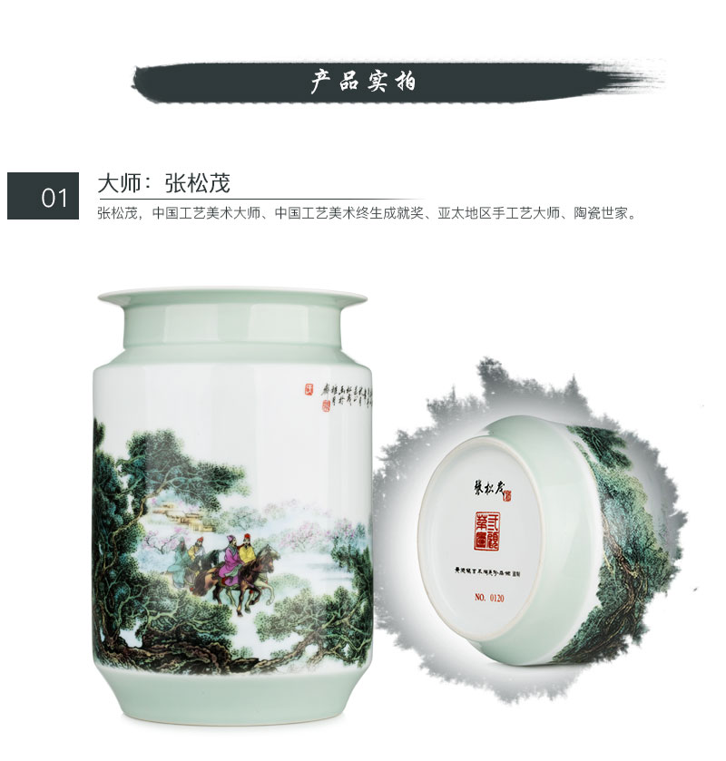 三顾茅庐孔明出山粉彩棋子瓶中国工艺美术大师