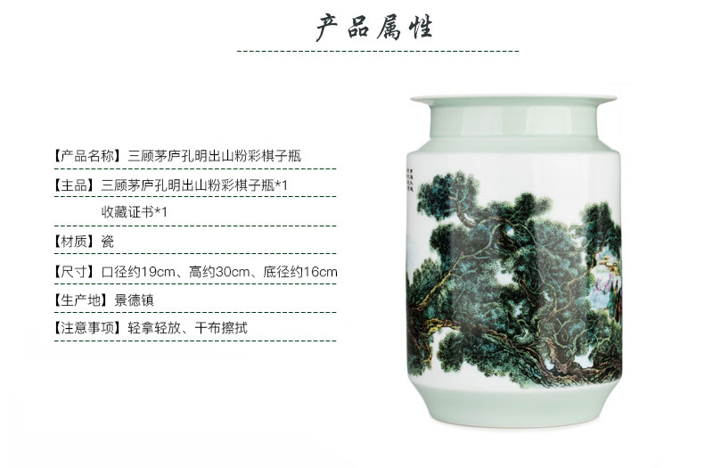 三顾茅庐孔明出山粉彩棋子瓶收藏馈赠佳品