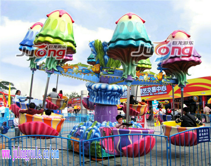 逍遥水母是一款腾空游乐设备,五颜六色的水母造型十分亮丽。不同于摇头飞椅的刺激,这款设备小孩子也可以玩。随转盘的转动徐徐升起,仿佛翱翔于天际。造型取意新、趣味性强,融惊险性与趣味性为一体。