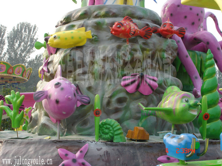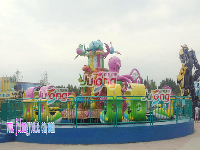 欢乐海洋是一种旋转类游乐设备,大章鱼的造型姿态十分可爱,还有各种海底生物,颜色亮丽,细节精致,造型美观,互动性强。此套设备是公园里一大亮点,能够吸引无数游客的眼球,乘坐时有着想象不到的乐趣!