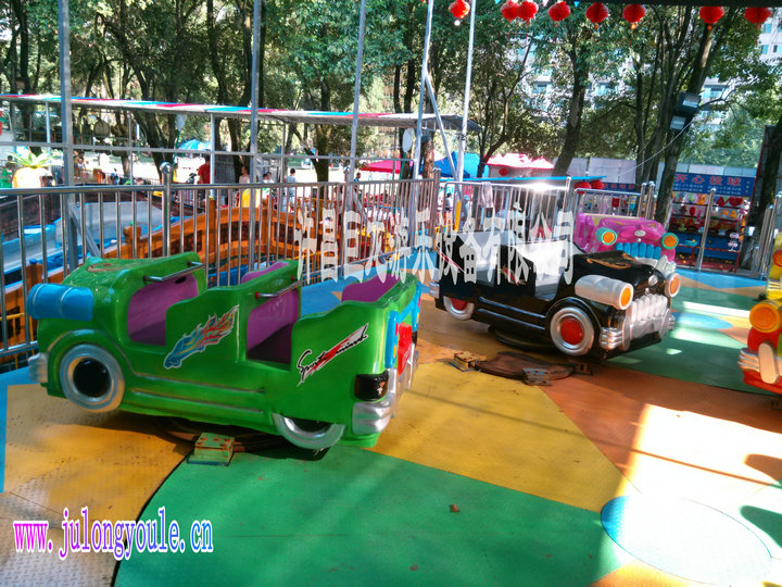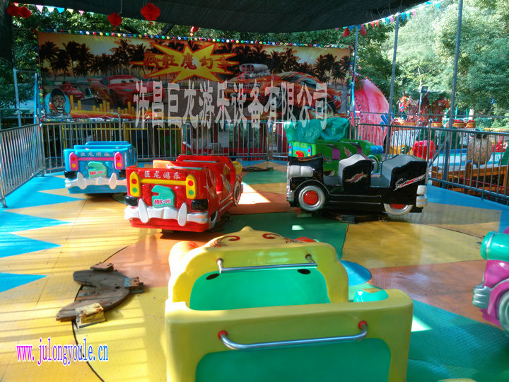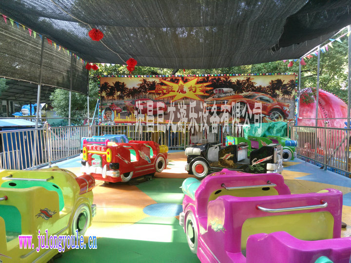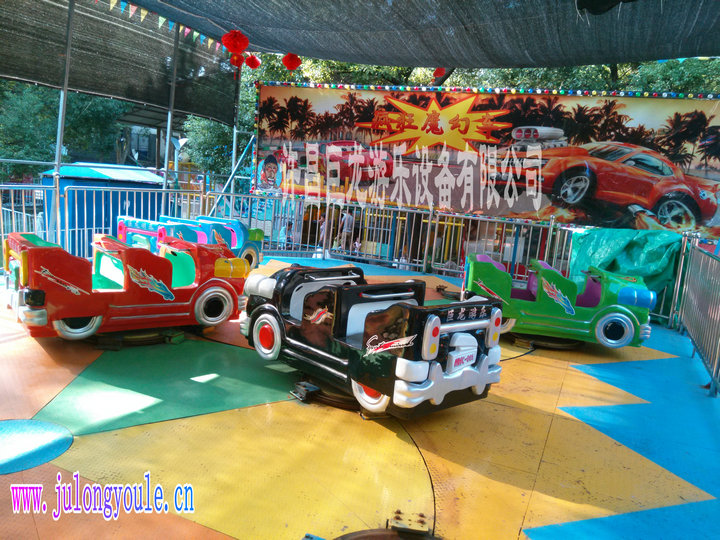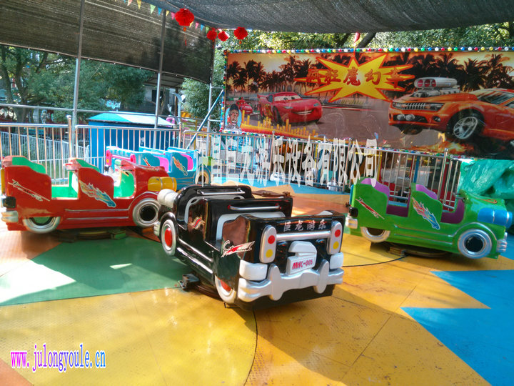 疯狂魔幻车,又称魔幻汽车,八字旋转车,疯狂旋转赛车。乘客驾驶着汽车在平台上面公转、自传、车与车之间不断交叉穿梭、又称八字旋转车它是许昌巨龙游乐推出的一种新型的游乐设施。是巨龙游乐设备根据游乐设施发展趋势新推出的一款面向2012的型游乐设施,它外表绚丽多姿,与其说它是游乐玩具,倒不如说它是艺术品。它堪称游乐设施界的F1赛车。我们的游客驾驶着汽车在平台上面公转、自传、车与车之间不断交叉穿梭、这就感觉一个字,爽!有木有一种设备让你百玩不厌有木有没有的话,可以来玩玩这个。