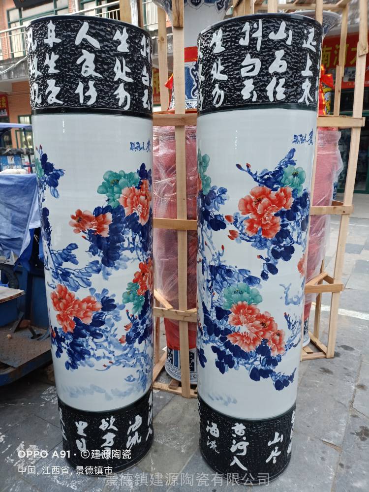 联系电话;13667986633(24小时咨询电话)公司企业成立祝贺摆件 景德镇陶瓷落地大花瓶
