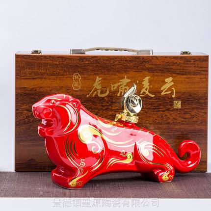 生肖红虎啸凌云白酒瓶 陶瓷礼盒套装3斤酒瓶定制厂家