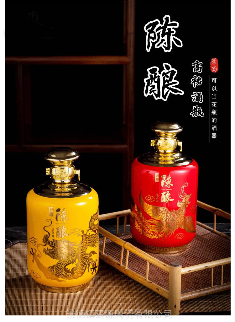 陶瓷酒瓶做工精湛,艺术表现形式多样,有着构思巧妙的创意,创作灵感来源于自然生活、传统文化、故事传说等,各种造型千姿百态,或写真、或抽象,于夸张变形中令人回味,令人思索,陶瓷酒瓶的密封强。