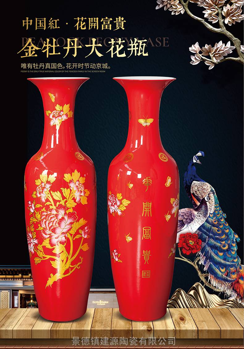 唐山市陶瓷金牡丹大花瓶 企业开业2米落地大花瓶