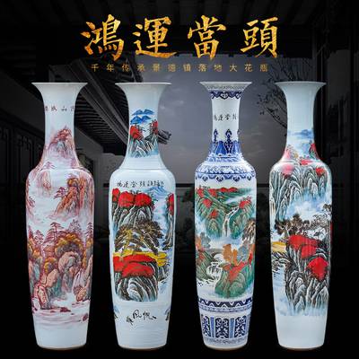 大酒店的大堂内,大门口看见摆放着的一对比人还高的陶瓷大花瓶,这些大花瓶不看工艺,但看其雄伟的身材,就颇有气势。这也是各个建筑内喜欢摆放这样一对大花瓶的原因。 陶瓷大花瓶为景德镇特产的商务礼品瓷品,适应大场所,大场面。酒店宾馆陈设,企业单位庆典,店铺开张,大楼建筑落成,工程竣工等的工艺礼品。不管在颜色方面还是造型上都搭配非常协调。从档次上考虑,花瓶为全手工制作包括胚胎都是非常考究的,而且如此有气势而且纪念意义强烈的花瓶,做为商务礼品可是非常珍贵的。特点就在于它的大气、保存时间长,走那都能看到,欣赏率高,让大家都记得您的大礼吧!