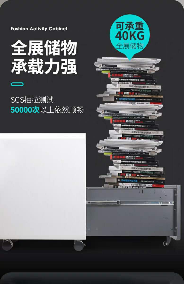 采用三节全展型静音滑轨,360°万向轮设计,方向灵活,每个轮子可承重25kg。