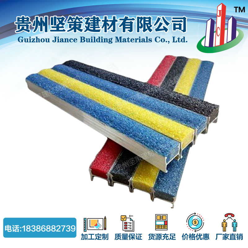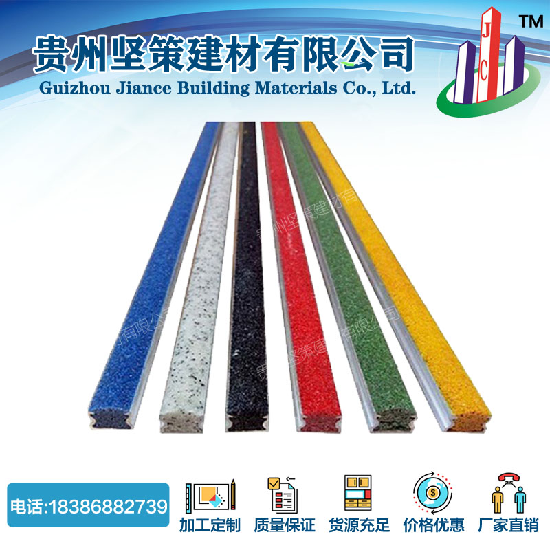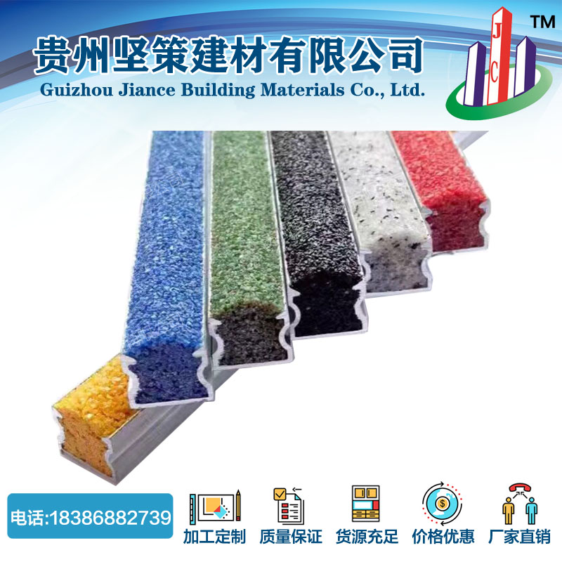 1:铝合金型材凹槽能填充天然金刚砂,提搞了防滑条的强度性能及防滑性能。