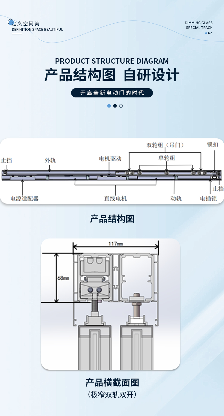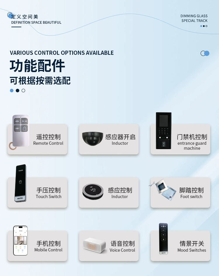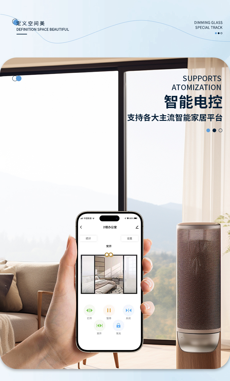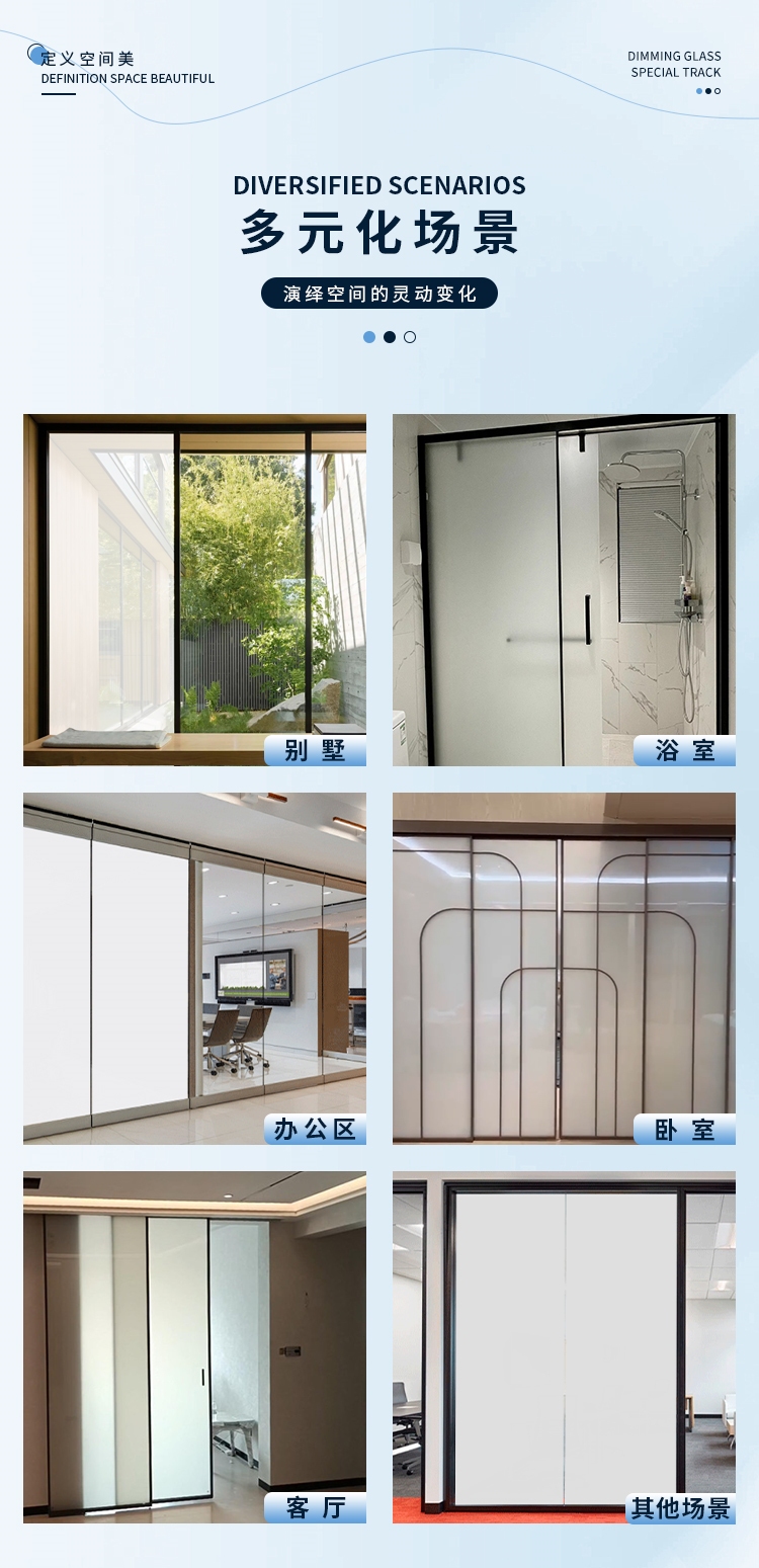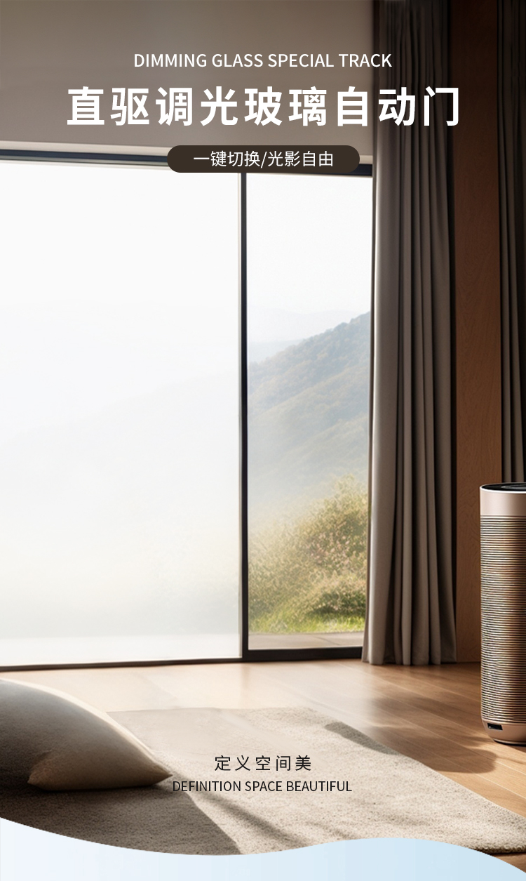 调光玻璃自动门是一种集自动感应开关与电控调光功能于一体的智能门体,通电透明、断电雾化,实现隐私与通透的自由切换,广泛应用于会议室、办公室等对私密性要求高的场所。
