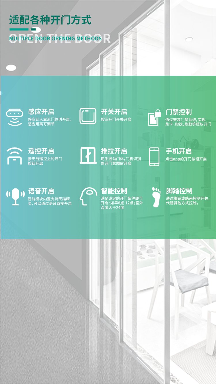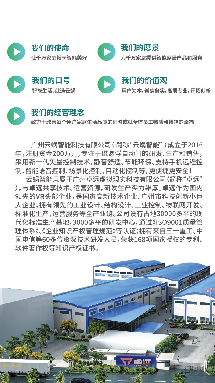 云蜗智能磁悬浮自动门适用场景广泛,能满足不同场景的需求,提升整体使用体验。可按需求选配功能配件,外接功能丰富,满足各种场合使用.