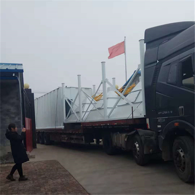 该除尘器一改常规的现场板式拼装结构为单之箱体现场组合式,既大大减少了现场安装工作量,又可有效地保证设备整机质量。中箱体下部的进风处设有截挡装置,含尘气体在进风箱内进入灰斗时,粉尘随其速度惯性冲撞挡板后,大部分即落入灰斗,其余少量细粉尘按截挡装置导流方向随气流进入滤袋室过滤。