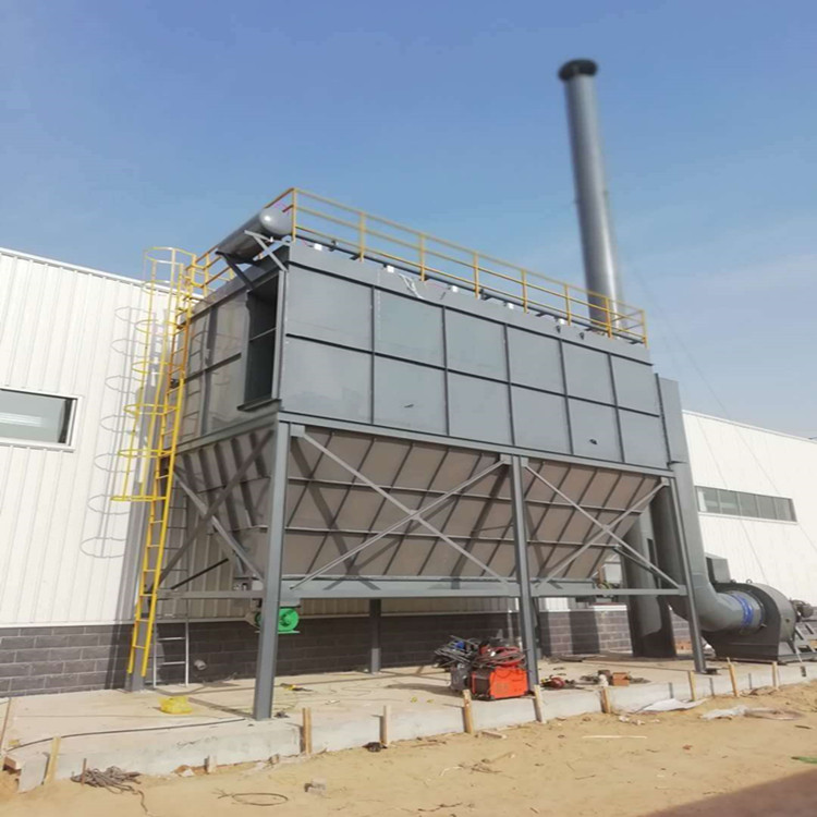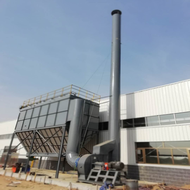 如应用工况温度较高,则需要选用中高温布袋,有明火情况下也可以在除尘器前面加阻火器来降低温度保护除尘器滤袋。脉冲袋式除尘器大多采用上部抽袋结构,因而要求厂房要有一定高度。在生产中常常因厂房高度不够而限制了除尘器的应用。当厂房高度比要求只矮1m左右时,可采用降低灰斗高度的方法,采用双灰斗结构。但这种方法需要1台螺旋输送机和卸料器,运行费用略有增加。上能满足抽袋空间时,可采用多级袋笼法,便此方法装拆袋时工作量会加大。以上方法仍不能满足要求时,可将屋顶打穿,将脉冲除尘器露天布置,根据烟气条件,确定是否需要加温,同时还要考虑电气设备的防雨问题。