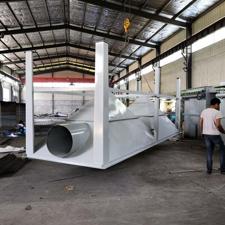 客户根据环评检验报告定制大型脉冲布袋除尘器,除尘器箱体要求4mm厚,滤袋为常温涤纶针刺毡,骨架碳钢喷塑,花板要求5mm厚,材质碳钢喷漆压型板。