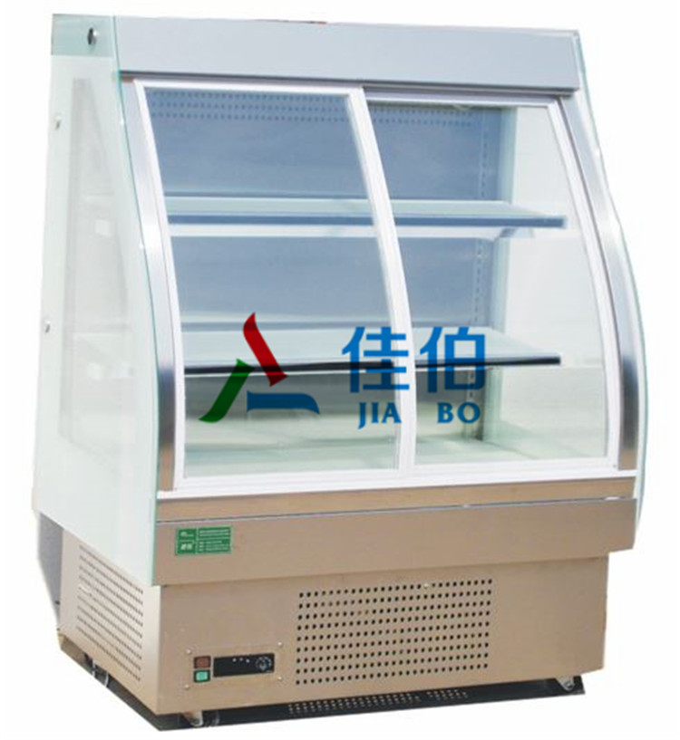 1.开放式或推拉前开门设计,两侧采用安全真空防爆全钢化玻璃,大面积清晰展示玻璃,高度透明,柜内物品清晰可见,全方位展示,展示效果好。精致铝合金平面层架,光滑表面倒映出食品的美态,清洁轻松方便。天然优质大理石底座,使用寿命长
