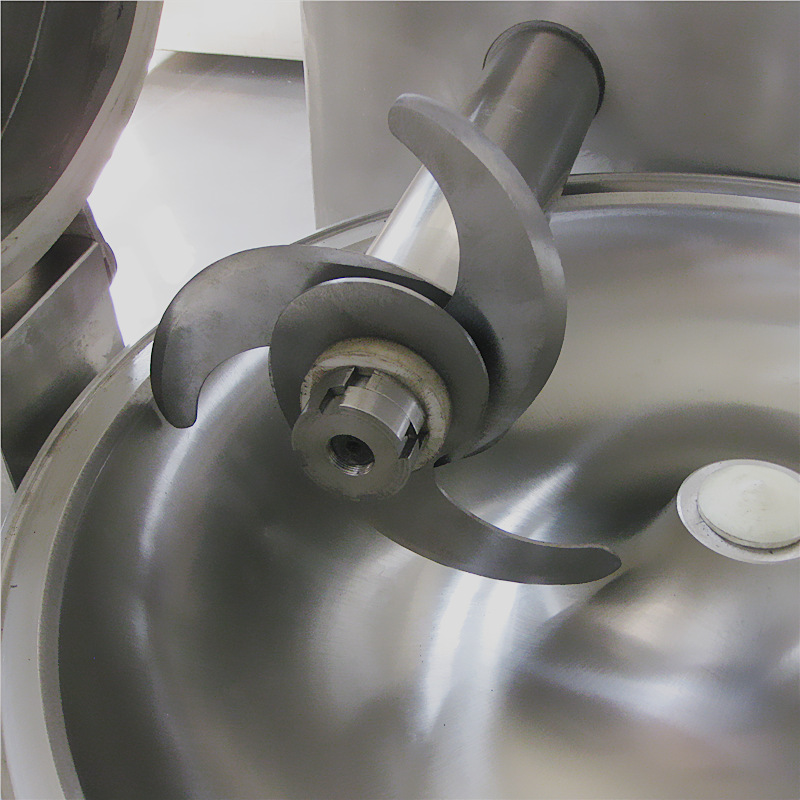 斩拌机是对原料进行斩切、搅拌和乳化,防止原料肉中肌红蛋白,脂肪及其他营养成分被氧化,破坏,从而保留了原有的色香、味及各种营养成分。通过斩切提高了产品的细密及和水的亲和力,使产品的弹性得到提高,该机具有刀轴转速高,功率大,斩切交乳化效果好,处理原料范围广等特点。不仅可斩化,乳化各种肉类,也可斩切,乳化肉皮,筋腱等粗纤维和复合胶原蛋白的原料。