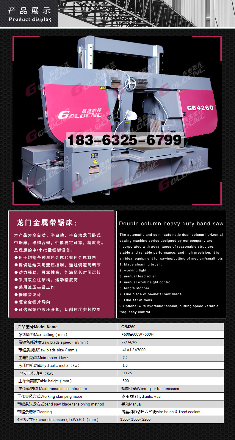 龙门卧式带锯床 http://www.goldcnc.cn/chanpinbaojia/lmdjc/index.html