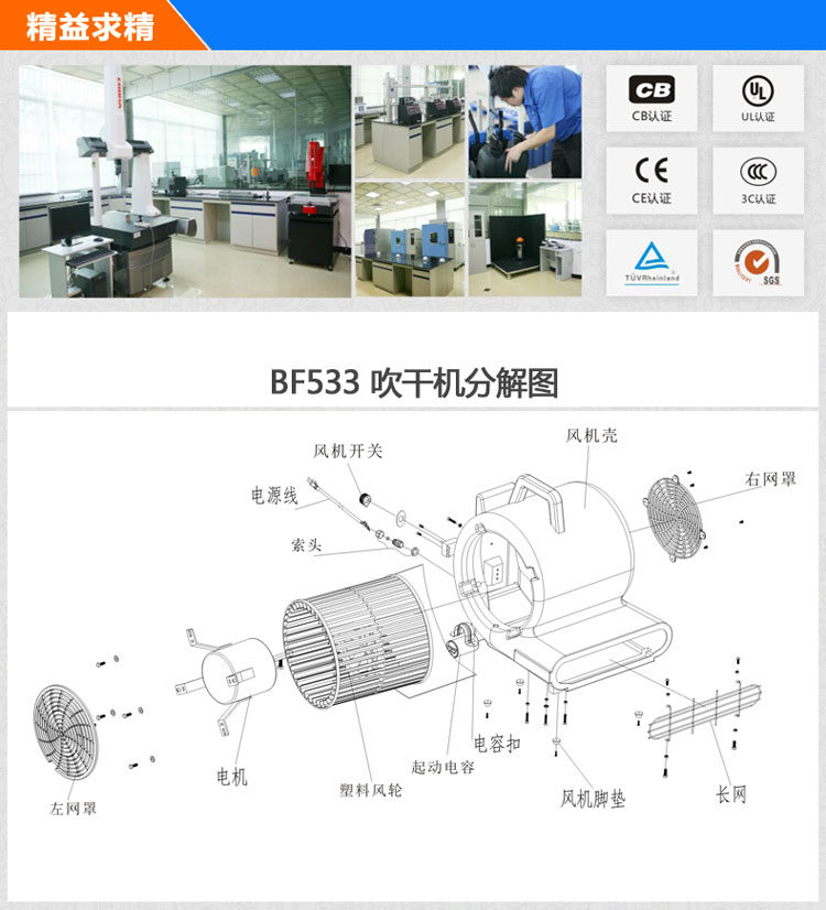 BF533洁霸强力吹干机适用于:化工、食品、医疗、电子、模具、五金、塑胶、造纸、印刷、造船、航空、汽车、铁路、发电、供电、水泥厂、石化、冶金、炼油、医院、公共建筑、酒店、机场、海港、物业、购物中心、超市、后勤中心、物流中心、文化广场、市政环卫等各种行业的清洁需求。