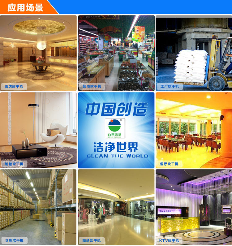 7.吹干机风力强劲,噪音低,适用于宾馆酒店,工厂,仓库各类的潮湿场地