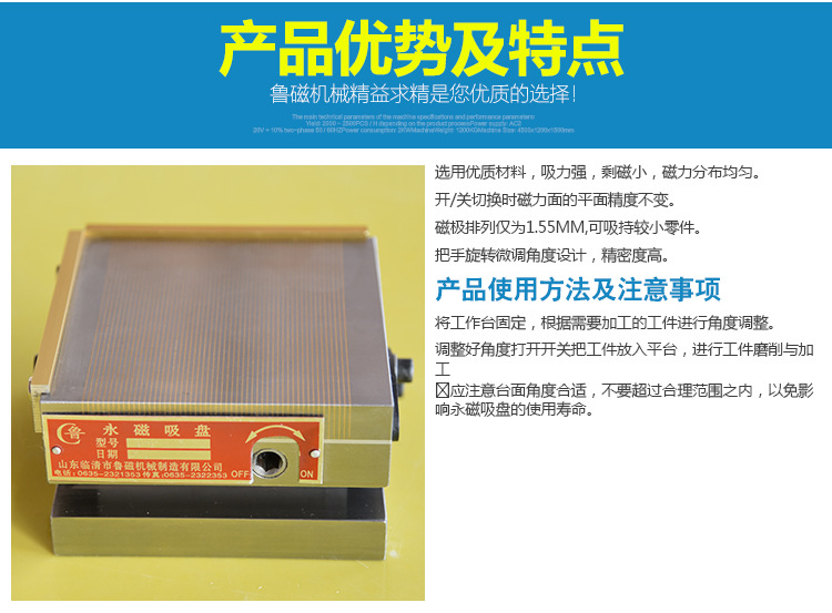 厂家直销正弦永磁台125*500单倾磨床100N间隔细密0- 永磁磁台 正弦永磁磁台 山东鲁磁