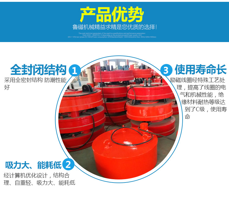 吸力大、能耗低:经计算机优化设计,结构合理、自重轻、吸力大、能耗低