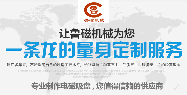 品牌优势 :鲁磁机械本着诚为金,信为本的经营理念在短短几年内与全国各大知名企 业形成良好合作伙伴关系,得到广大客户的认可。如;三一重工,海尔,海信,北汽,中国一汽等等,树立自己良好企业信誉和品牌形象。