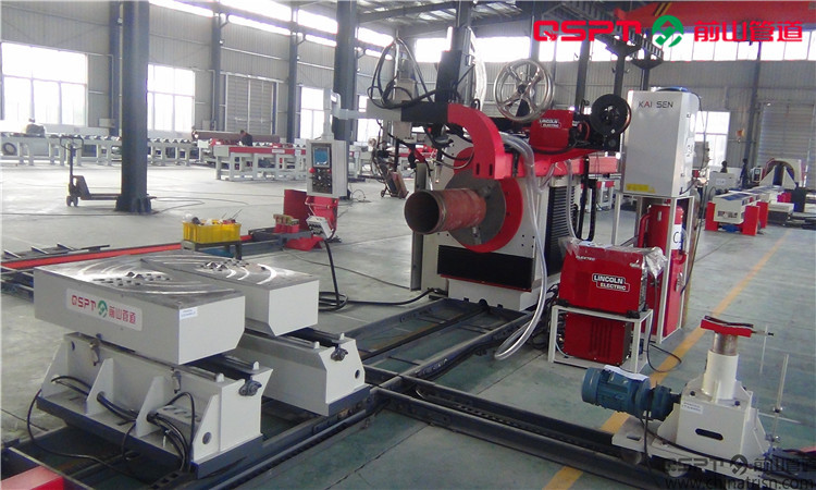 利用1台固定式带卡盘的焊接变位器,1套安装在其上的焊接伸缩臂,1台多功能组对机头和1条15#机加工轨道,变位器和组对器先共同完成焊口的组对,再移走组对器,进行焊口的自动焊接。