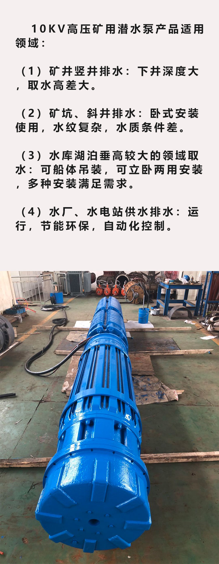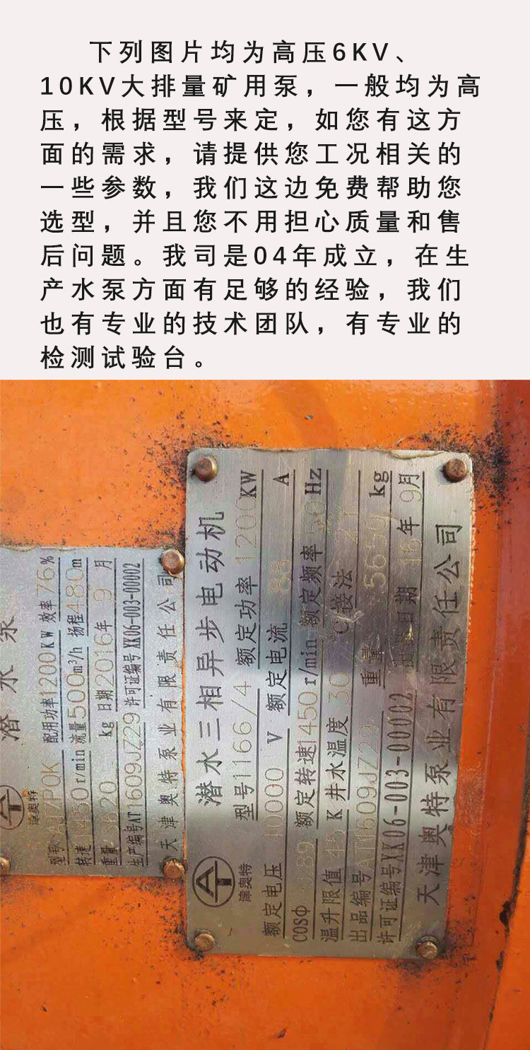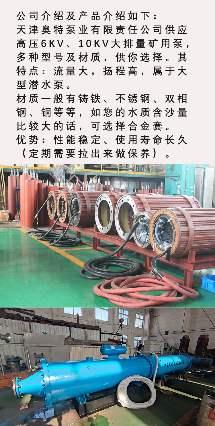 这类水泵在便携性上进行针对性设计:整机重量控制在 15-30kg,配备可拆卸式手提支架,单人即可搬运;采用分体式电机与泵体结构,拆卸后可通过矿井狭窄通道(如巷道、爬梯)灵活运输,安装时无需复杂工具,10 分钟内即可完成组装并投入使用。同时,设备采用防水等级 IP68 的电缆,长度可达 20-50 米,可根据积水位置灵活调整放置点,无需额外铺设长距离管道,进一步提升使用灵活性。