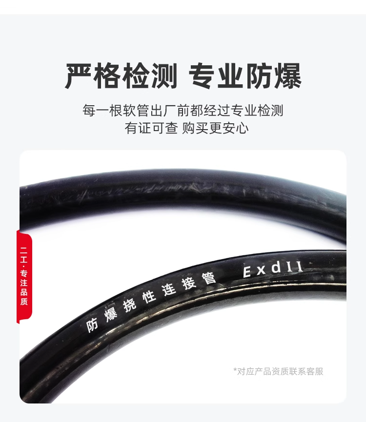 产品主要由防爆活接头、柔性管体和防护包覆层组成,管体分橡塑护套、钢丝网编织、不锈钢网编织三种类型