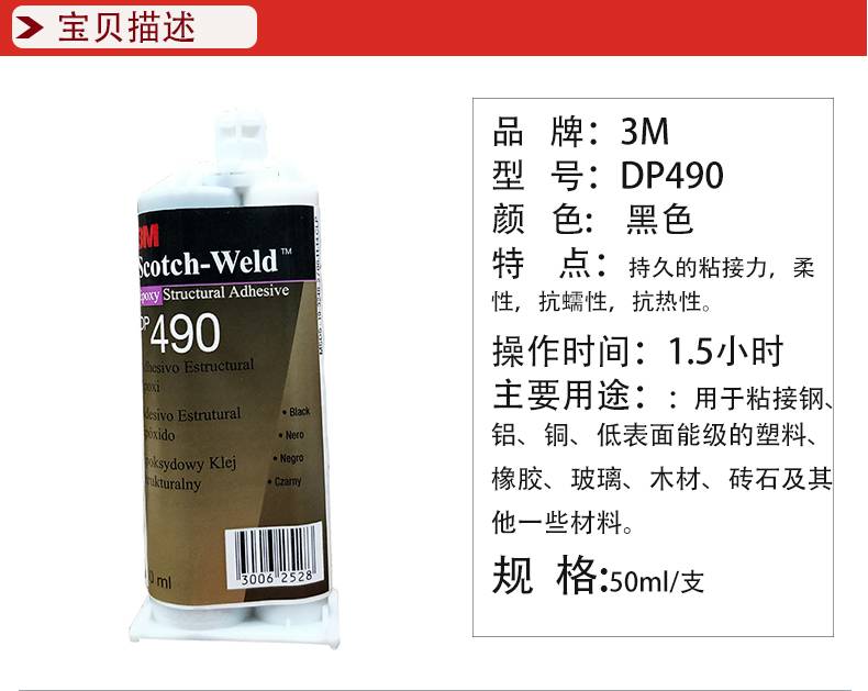 3MDP490胶粘剂是一种黑色,触变性的,间隙填充具有高使用特性的双组份环氧粘接剂,
