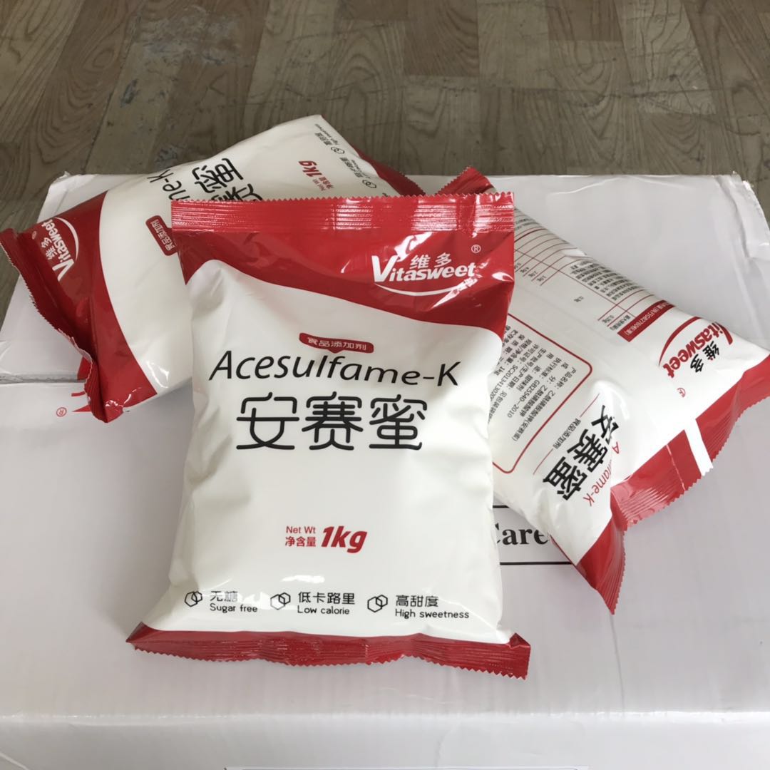 安赛蜜 英文: acesulfame , 分子式:C4H4SKNO4S , 分子量:201.24 , CAS:55589-62-3 , 含量99.6% AK糖,学名乙酰磺胺酸钾(Acesulfame-K),又叫安赛蜜。 是一种健康新型高强度甜味剂。它是一种有机合成盐,其口味酷似蔗糖,甜度为蔗糖的200倍,与其他甜味剂使用时具有协同增甜效果。它容易保存,并具有热稳定性,可以经过人的消化系统排泄出来而不发生变化,因此没有卡路里。由于它具有甜度大、性质稳定、口感清爽、风味良好,不带苦、金属、化学等不良后味,以及价格便宜等优点,同时大量的广泛深入的毒理试验结果证实它安全无副作用,因此在国际甜味剂市场倍受青睐。 可广泛用于各种食品。限量:饮料、冰淇淋、糕点、糖果、果酱、酱菜、蜜饯、胶姆糖、八宝粥罐头、果冻、面包0.3调味料0.5;餐桌用甜料,每片,每包40mg;风味酸奶0.35;无糖(低糖)糖果及胶姆糖2.0;无糖口香糖4。 AK糖特点 1. 性能优越,口味纯正: AK糖口味清爽,甜味感觉迅速,没有不良口感。 2. 溶解性好: 它极易溶解于水,微溶于酒精,20度的水中溶解度为27克。 3. 不含热量: 它不在人体内代谢,因此完全不含热量。代替蔗糖在食品和饮料中使用,可以降低卡路里含量。 4. 高稳定性: 它具有非常好的稳定性,能够耐受225℃的高温,PH2-PH10范围内保持稳定,不与食品或饮料中其它成份发生反应。因此在食品饮料中使用它可以延长货架期。 形状:白色、结晶状粉末 高甜度、其甜度约是蔗糖(3%溶液)的200倍 无异味,不吸湿,水溶性高,对热、酸稳定性好 用于食品加工不会引起微生物发酵 食用安全, 可控制热量的摄入,特别适于肥胖者及高血压病人 不增加人体血糖值,特别适于糖尿病患者 不会引起龋齿 适用性强,使用范围广(食品、饮料、医药、日用品、餐桌甜味剂) 提供给产品健康的形象(清爽、护齿、无糖、低热量) 降低生产成本,保证或延长货架期 与蔗糖、阿斯巴甜(Aspartame)等甜味剂复配使用,协同增效效果显著。