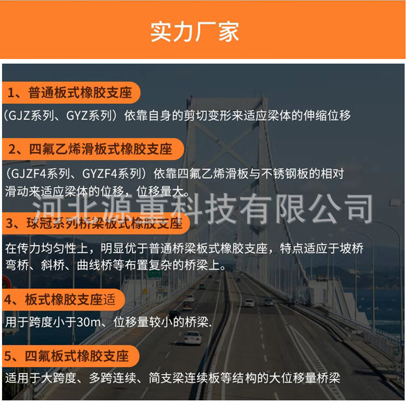 产品型号:普通板式橡胶支座、四氟橡胶支座
