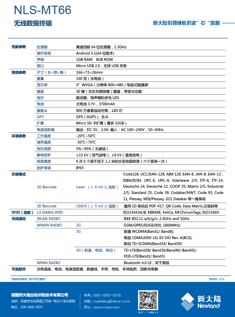 ◆ 丰富的功能配置支持1D/2D/BT/WiFi /4G全网通/3G全网通/GPS/ Camera/NFC,满足多样应用需求。