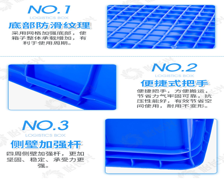 周转箱可与多种物流容器和工位器配合、用于各类仓库、生产现场等多种场合,周转箱帮助完成物流容器的通用化、一体化管理,是生产及流通企业进行现代化物流管理的必备品。 特点 无、无味、防潮、耐腐蚀、重量轻、耐用、可堆叠、颜色丰富、纯正等特点。
