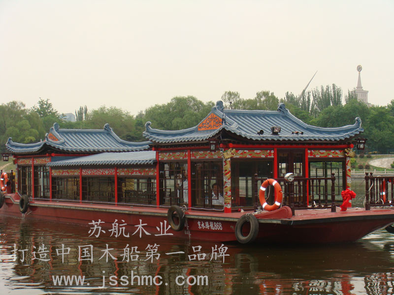 14米餐饮画舫船、木质画舫观光餐饮船图片展示: