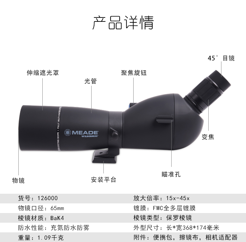 送单反卡口米德15-45x65单筒变倍观鸟望远镜观靶镜15倍45倍可把目标放大缩小拉近拉远 送佳能卡口