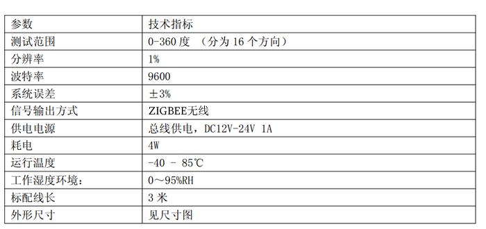 风向传感器体积小巧,法兰盘底座,携带、安装方便快捷、外观精美,测量精度高,量程宽,稳定性能好,低功耗,数据信息性度好,信号传输距离长,抗外界干扰能力强,信号输出形式多样。