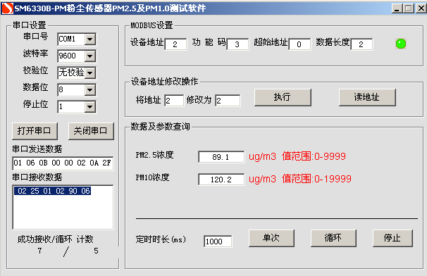 即为:891,实际值需除以10,则PM2.5浓度为89.1ug/m3。