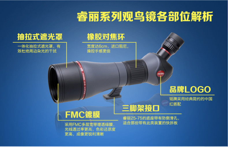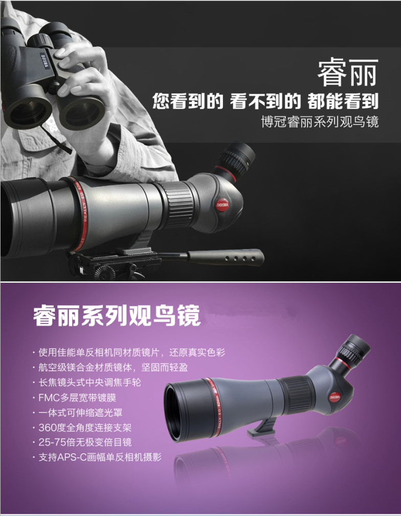 北京睿丽ED镜25-75x82单筒变倍望远镜观鸟望远镜全画幅可接单反相机25倍75倍