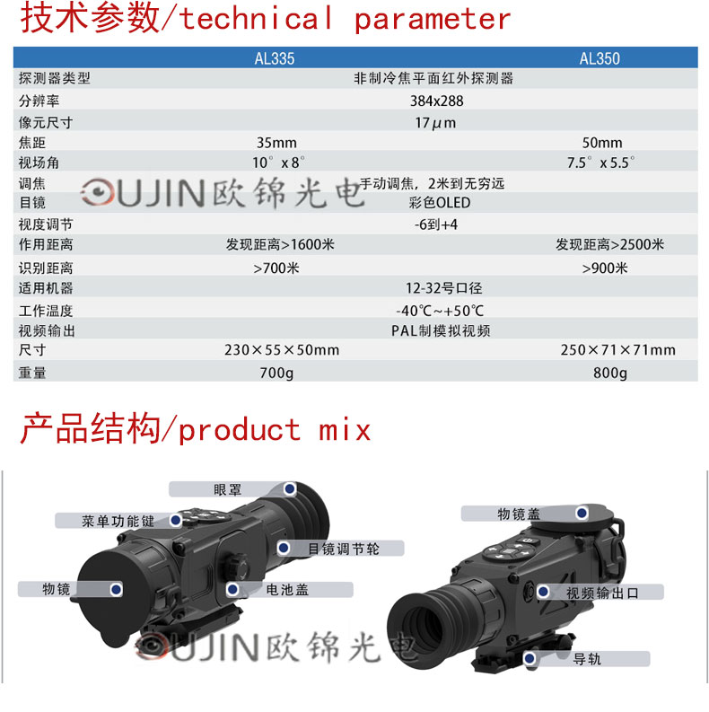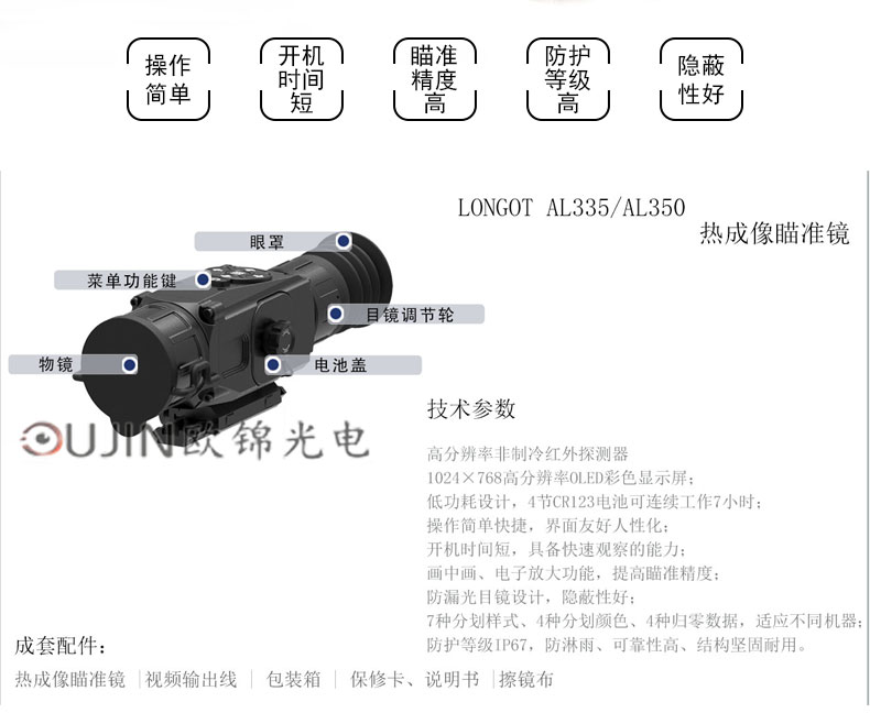高清分辩率红外热成像仪LA335/LA350热成像仪 高抗震热瞄 带十字架画中画快速校准 LA335 35镜头