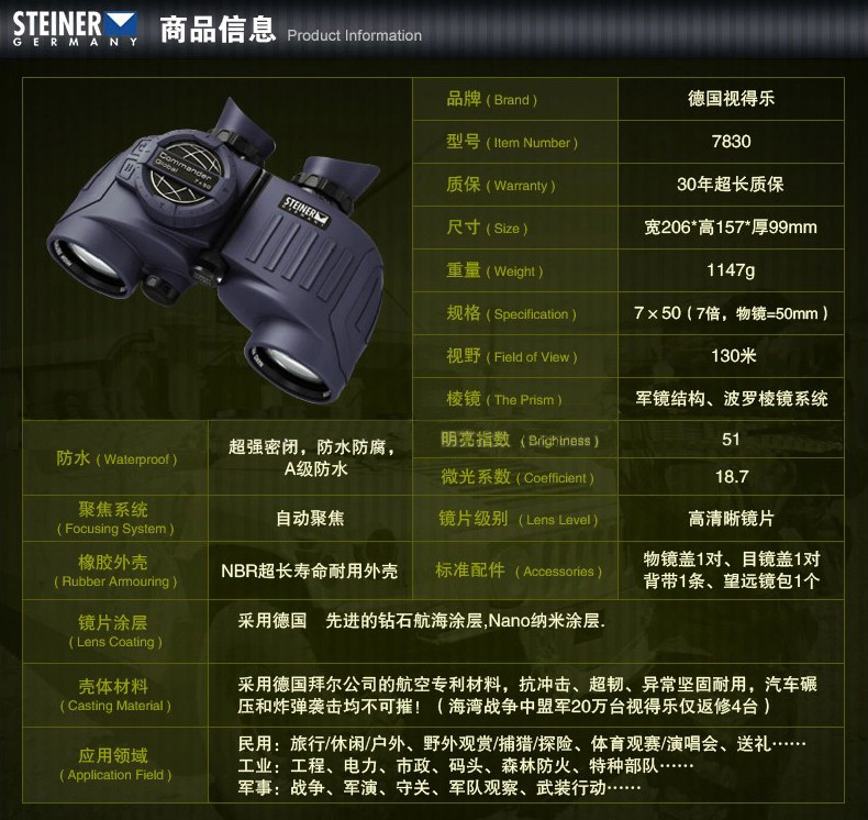 德国原装视得乐环球司令Commander Global7X50防水航海双筒望远镜 7830