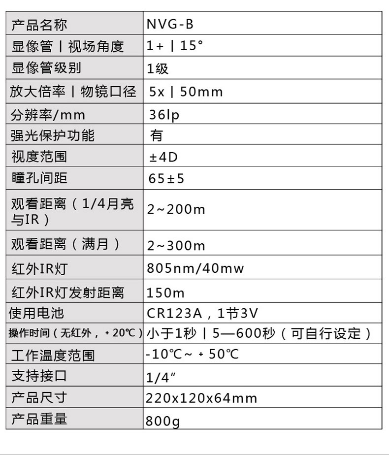 产品型号:NVG-B 5x50