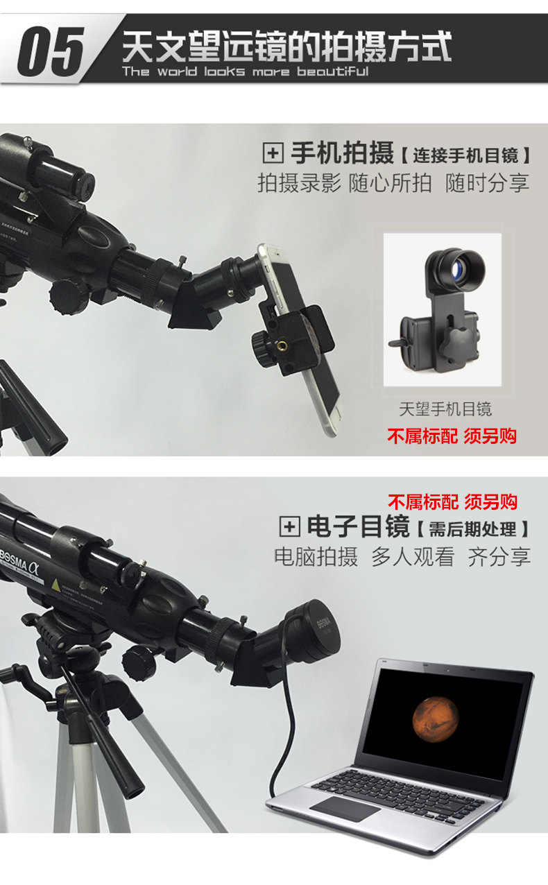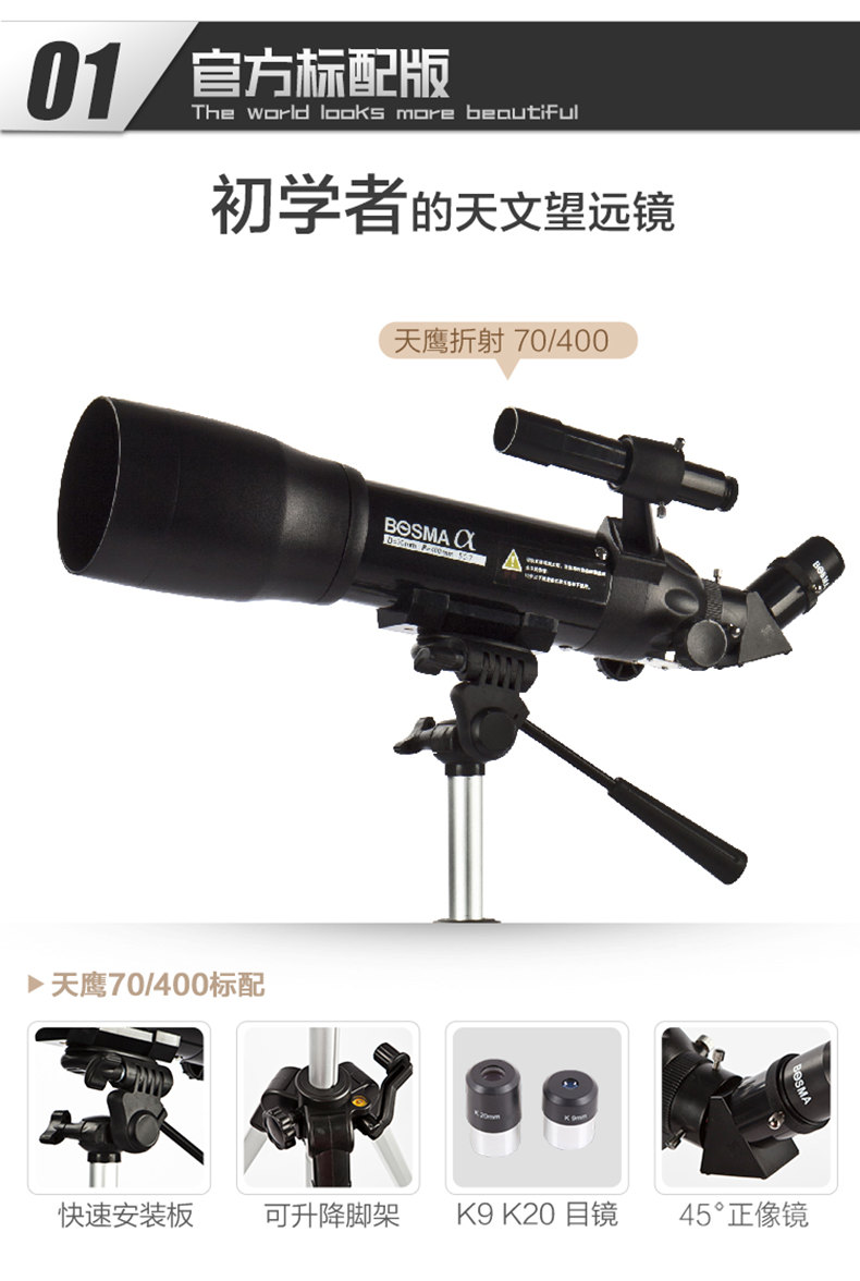 新款入门天文望远镜博冠天鹰70/400便携式儿童天文望远镜正像观天观景天地两用折射式礼品天文望远镜 套餐七