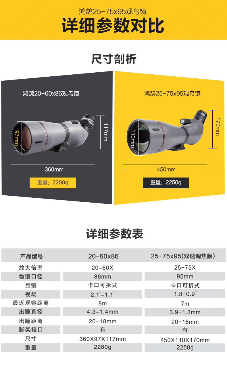 大连单筒变倍望远镜25倍75倍ED镜双速调焦观鸟镜观靶镜AP