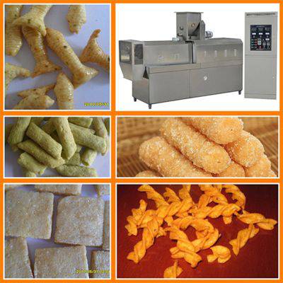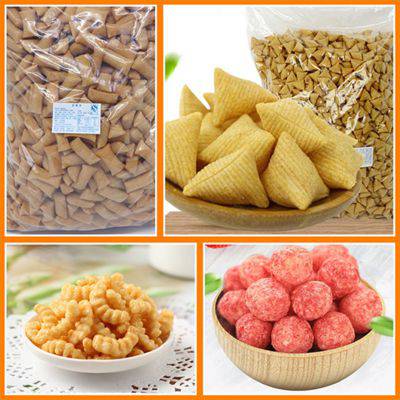 该生产线以薯类淀粉,玉米淀粉,面粉为主要原料利用独特的挤压成型工艺,生产市场上流行的形状各异的二次膨化食品。该生产线设计合理,自动化程度高,挤压参数控制***,主机配有高低压螺杆,增加了原料的使用范围,降低了成本,改善了产品的品质。主要产品有螺旋。贝壳,圆管,方管,圆圈,卡通形,运动形到呢个。生产的产品造型逼真,油炸后组织细腻,口感酥脆。