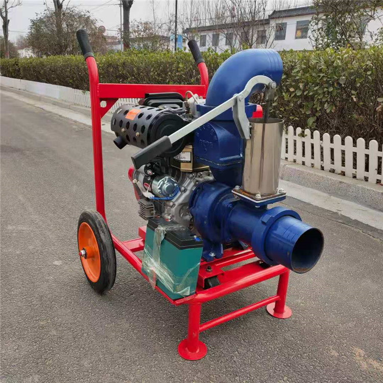 汽油机水泵是一种离心泵。离心泵的工作原理就是在泵内充满水的情况下,发动机带动叶轮,从而产生离心力,叶轮槽道中的水在离心力的作用下甩向流进泵壳,于是叶轮中心压力,这个压力低于进水管内压力,水就在这个压力差的作用下由吸水池流入叶轮。这样水泵就可以不断地吸水不断地供水了。主要用途:农业排灌,工业排水等装置。