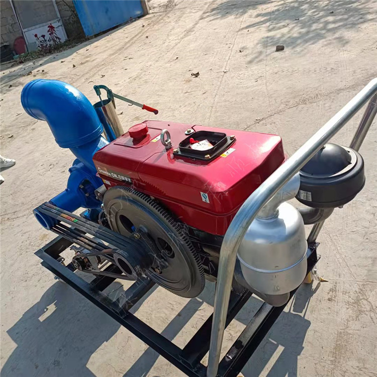 汽油机水泵是一种离心泵。离心泵的工作原理就是在泵内充满水的情况下,发动机带动叶轮,从而产生离心力,叶轮槽道中的水在离心力的作用下甩向流进泵壳,于是叶轮中心压力,这个压力低于进水管内压力,水就在这个压力差的作用下由吸水池流入叶轮。这样水泵就可以不断地吸水不断地供水了。主要用途:农业排灌,工业排水等装置。