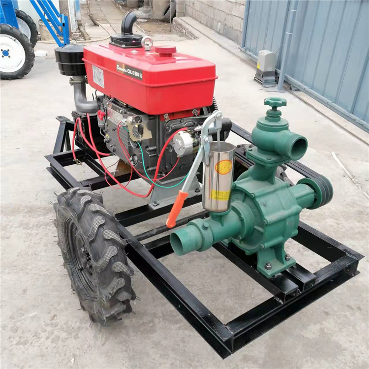 汽油机水泵是一种离心泵。离心泵的工作原理就是在泵内充满水的情况下,发动机带动叶轮,从而产生离心力,叶轮槽道中的水在离心力的作用下甩向流进泵壳,于是叶轮中心压力,这个压力低于进水管内压力,水就在这个压力差的作用下由吸水池流入叶轮。这样水泵就可以不断地吸水不断地供水了。主要用途:农业排灌,工业排水等装置。