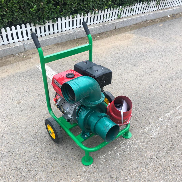 汽油机水泵是一种离心泵。离心泵的工作原理就是在泵内充满水的情况下,发动机带动叶轮,从而产生离心力,叶轮槽道中的水在离心力的作用下甩向流进泵壳,于是叶轮中心压力,这个压力低于进水管内压力,水就在这个压力差的作用下由吸水池流入叶轮。这样水泵就可以不断地吸水不断地供水了。主要用途:农业排灌,工业排水等装置。