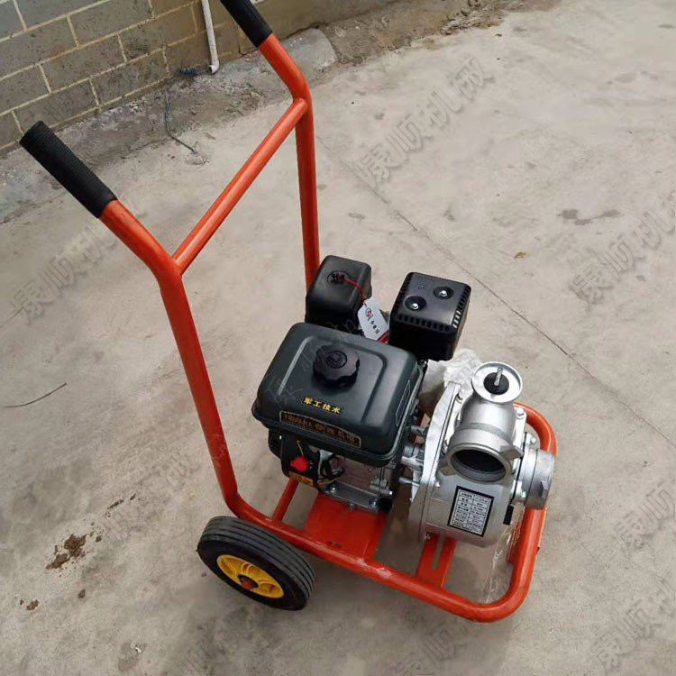 汽油机水泵是一种离心泵。离心泵的工作原理就是在泵内充满水的情况下,发动机带动叶轮,从而产生离心力,叶轮槽道中的水在离心力的作用下甩向流进泵壳,于是叶轮中心压力,这个压力低于进水管内压力,水就在这个压力差的作用下由吸水池流入叶轮。这样水泵就可以不断地吸水不断地供水了。主要用途:农业排灌,工业排水等装置。